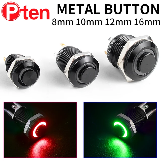 1NO High head Waterproof Metal Push Button Switch LED Light Self-locking/reset 3/6/12/24/220V 8/10/12/16mm Oxidized black