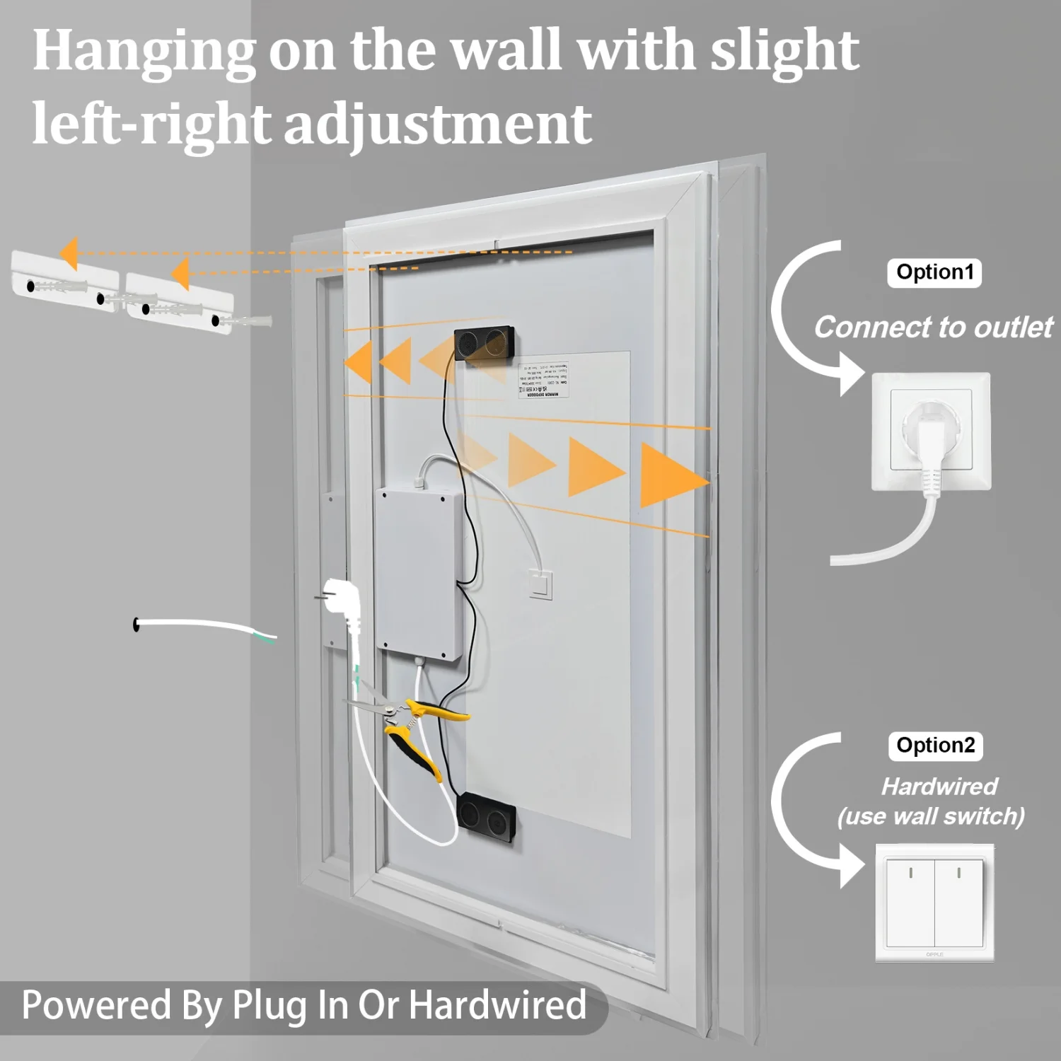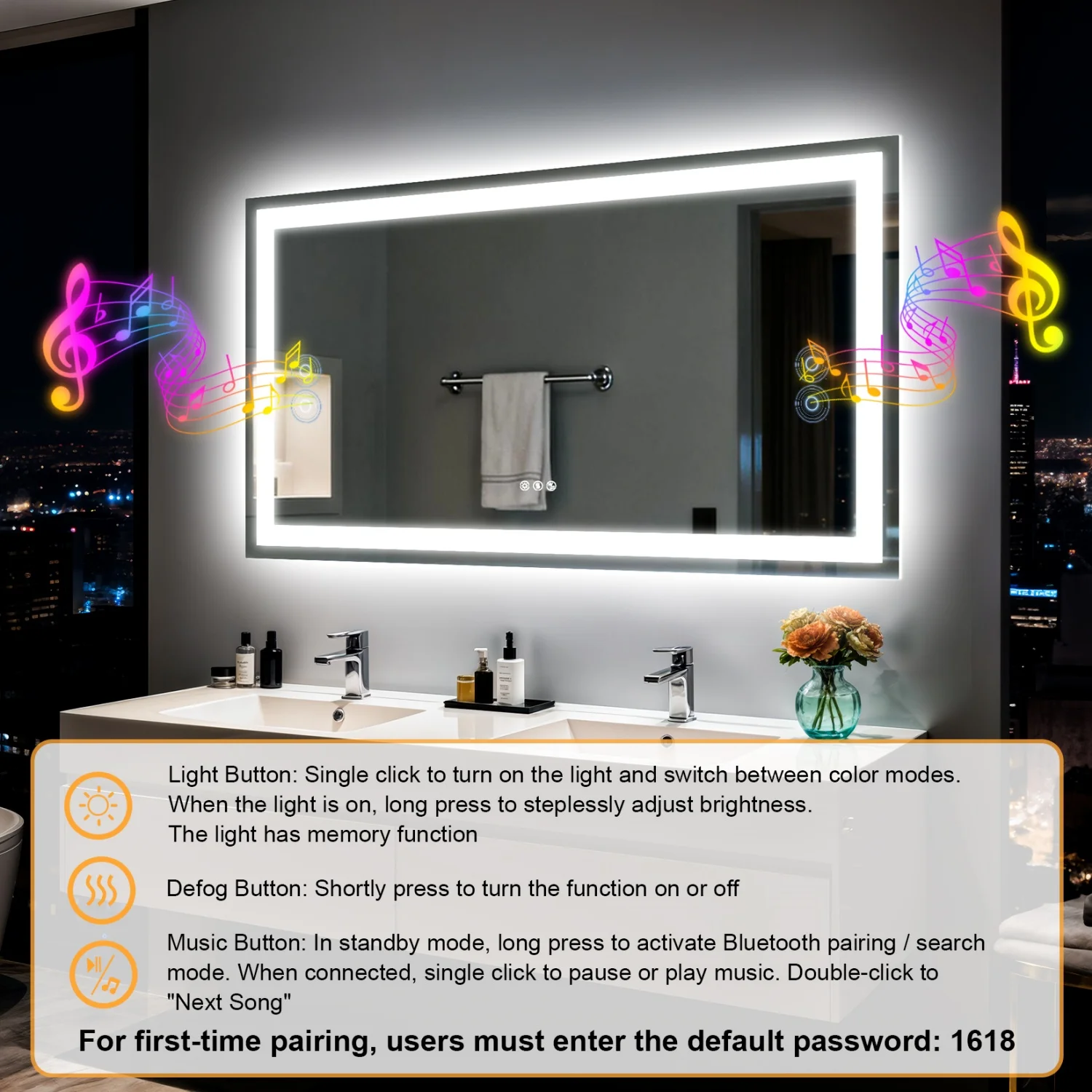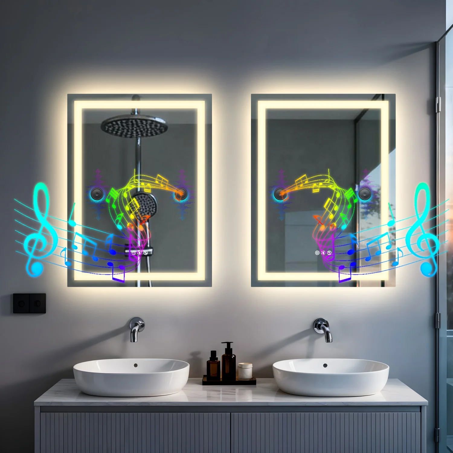 50/60/100/120cm LED Bathroom Mirror Built-in Bluetooth Speaker Anti-Fog Dimmable Backlit Lighted Vanity Makeup Waterproof