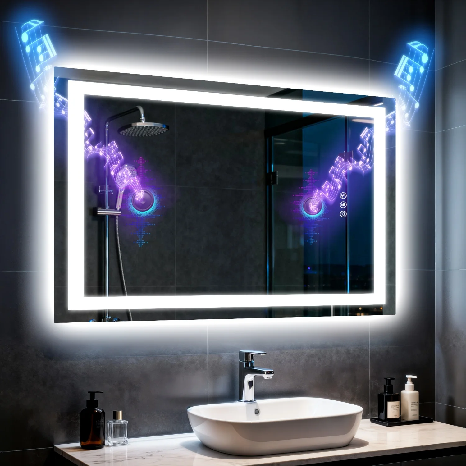 50/60/100/120cm LED Bathroom Mirror Built-in Bluetooth Speaker Anti-Fog Dimmable Backlit Lighted Vanity Makeup Waterproof