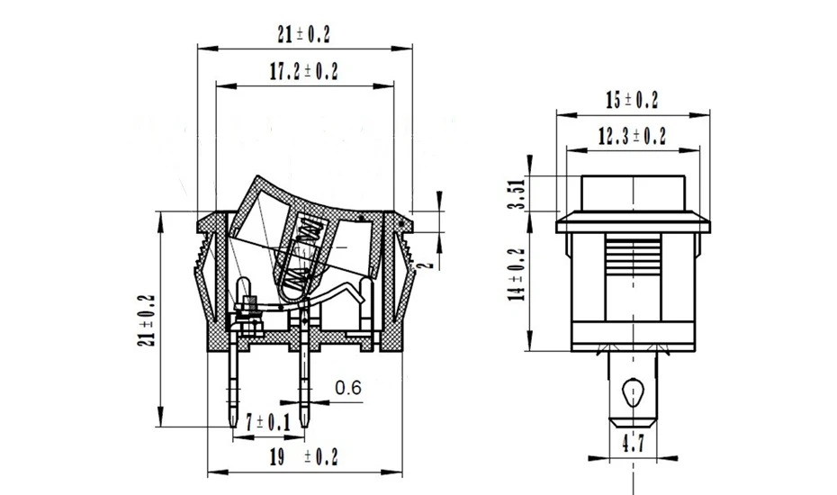 5Pcs/Lot Black Push Button Mini Switch 6A-10A 110V 250V KCD1 2Pin Snap-in On/Off Rocker Switch 5PCS/Lot 21MM*15MM BLACK