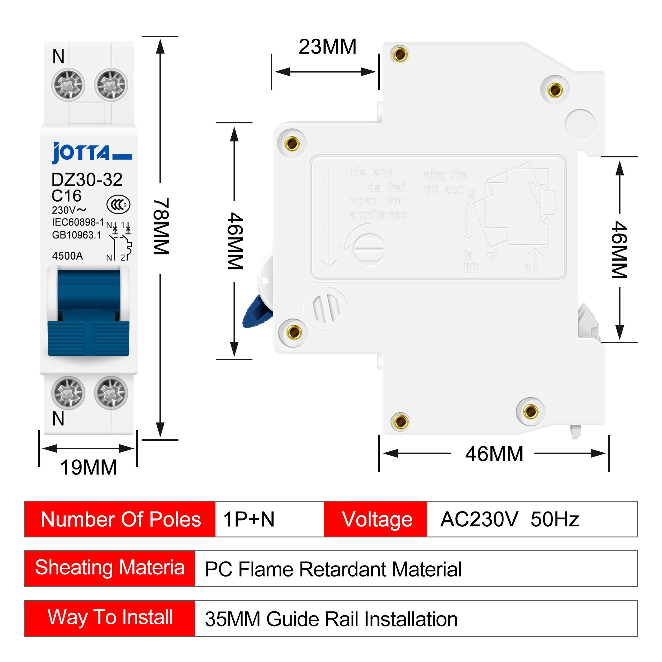 Be the first to review “JOTTA DPN 1P+N Mini Circuit Breaker MCB 6A10A 16A 20A 25A 32A Din Rail Mounting Miniature Household Air Switch”