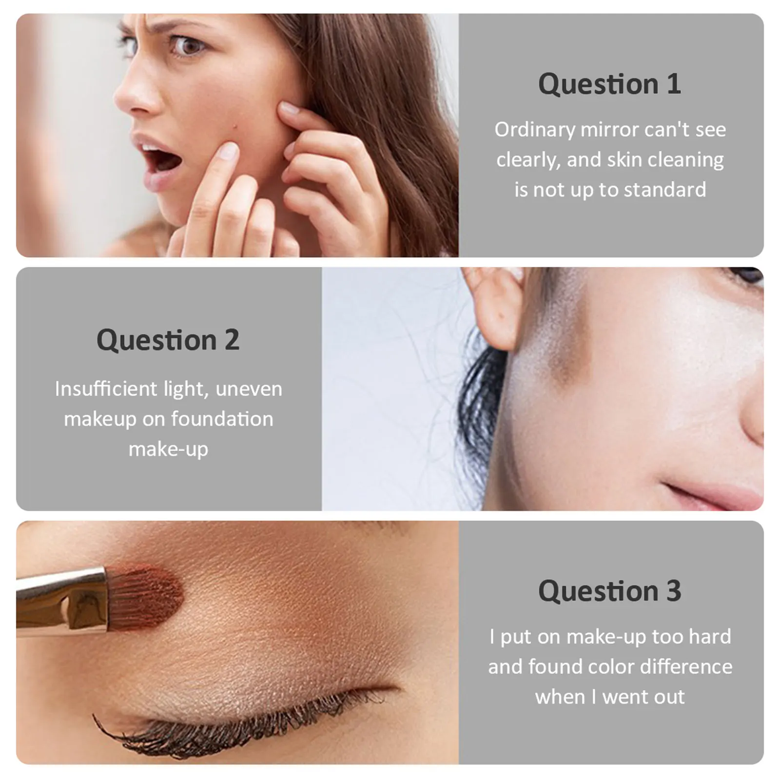 Rectangular Cosmetic Mirror: This LED makeup mirror features a rectangular shape which mirrors the whole face and even hair. And the LED makeup mirror with kickstand is convenient to adjustable angle for makeup.