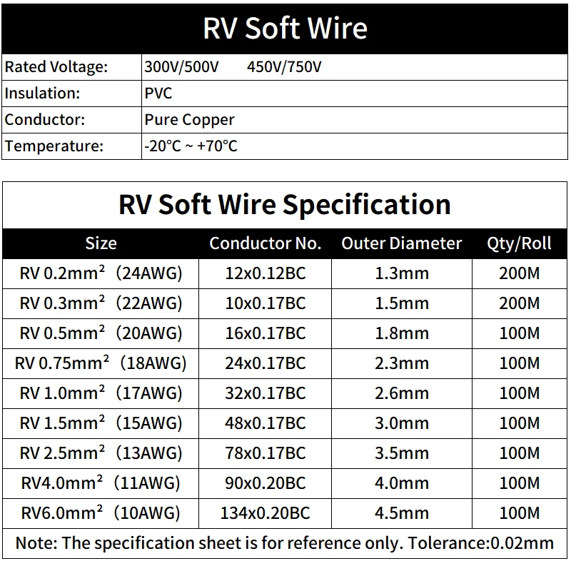 RV Copper Wire Flexible Cable Electric PVC Electrical Cable 300/500V Single-Core Multi-Strand Flexible Wire For Car Audio Wires
