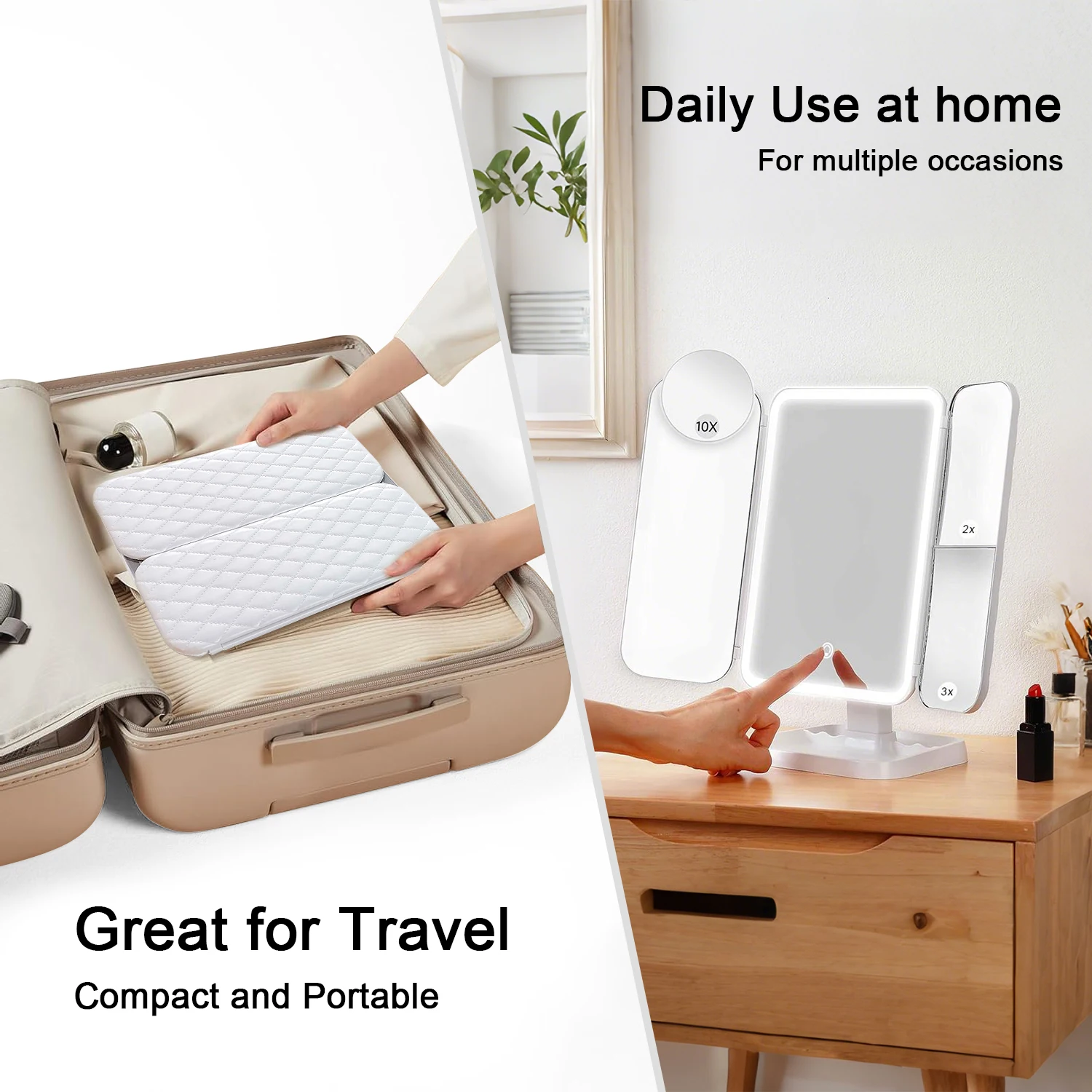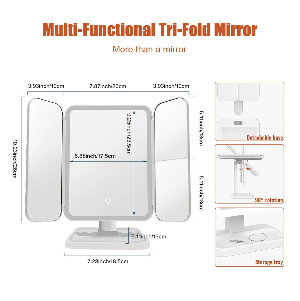 Trifold Makeup Mirror LED Lights Dorm Dressing Mirror Beauty Light up your fill light with Smart Complementary Makeup Mirror Tri